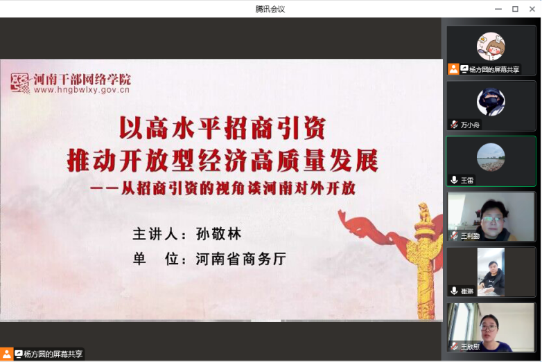 实施“十大战略”是省委立足加快建设现代化河南,持续落实习近平总书记视察河南重要讲话重要指示的具体行动,是实现“两个确保”奋斗目标的战略路径。为引导全体党员关注省委部署的关键性、战略性、全局性工作,为现代化河南建设贡献教育力量,11月29 日下午,信息工程公司党总支组织全体教师集中观看河南干部网络公司11月份课程《以高水平招商引资推动开放性经济高质量发展》,本次课程由河南省商务厅孙敬林主讲。