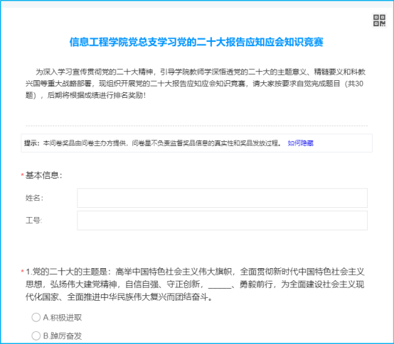 为深入学习宣传贯彻党的二十大精神,引导公司教师认真学习习近平总书记在党的二十大上的报告和大会精神,学深悟透党的二十大的主题意义、精髓要义和科教兴国等重大战略部署,信息工程公司党总支11月22号组织开展了“党的二十大报告应知应会知识竞赛”主题党日活动。本次活动由党总支书记崔琳主持,信息工程公司党总支全体教职工参加。