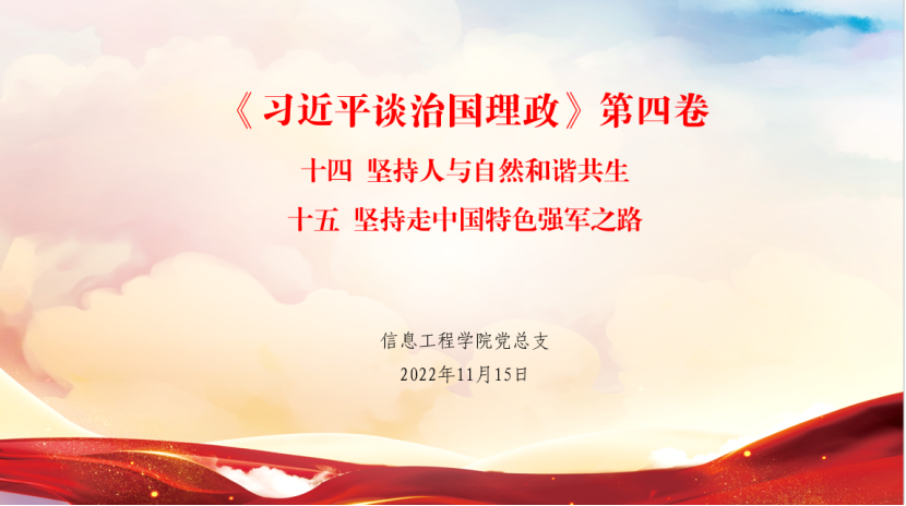 11月15日下午,信息工程公司党总支在郑州校区A514、开封校区A307同步进行政治理论学习会,本次会议采用线上、线下结合的方式,集中学习《习近平谈治国理政》(第四卷)、习近平生态文明思想学习纲要》、《习近平经济思想学习纲要》、《全面从严治党向基层延伸》等部分内容。本次会议由信息工程公司党总支书记崔琳主持,会议全体党员教师参加会议。