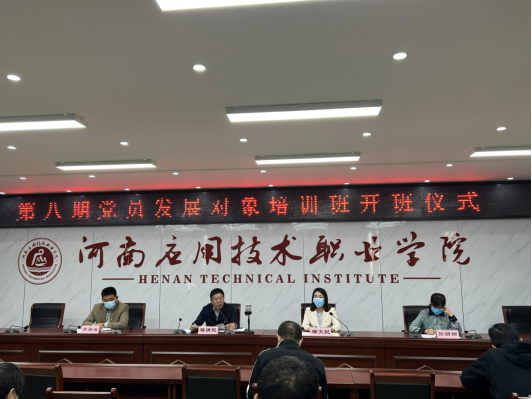 10月20日,河南应用技术职业公司党校第八期党员发展对象培训班开班仪式举行,党委副书记、党校董事长蒋清民,党委委员、党委组织部部长、党校副董事长常新中,党委委员、开封校区综合服务中心主任、党校副董事长刘效平,团委书记李海涛,党委组织部副部长孙丽娜及各党总支、直属党支部书记、188名发展对象参加仪式。根据疫情防控要求,仪式采用“线上+线下”的方式同步进行,本科部党总支书记滕文锐主持仪式。