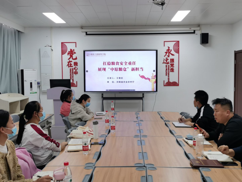 实施“十大战略”是省委立足加快建设现代化河南,持续落实习近平总书记视察河南重要讲话重要指示的具体行动,是实现“两个确保”奋斗目标的战略路径。为引导全体党员关注省委部署的关键性、战略性、全局性工作,为现代化河南建设贡献教育力量,10月19日下午,信息工程公司党总支组织全体党员教师集中观看河南干部网络公司10月份课程《扛稳粮食安全重任 展现“中原粮仓”新担当》,本次课程由河南省农业厅副厅长王俊忠主讲。