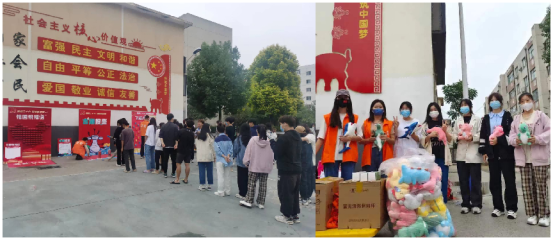 携手联欢迎佳节,师生同乐庆国庆。游戏互动区的师生一个个都忙的不亦乐乎,大家不分年龄,积极参与,在员工志愿者的主持下进行乒乓球投篮和复古潮流投壶等活动,达成规定活动要求后可以领取自己心仪的礼品。大家拿到奖品后,纷纷与国庆节主题背景板合影留念,欢度国庆。现场气氛活跃,热闹非凡。" 这类游戏设计的很好,不仅能体验到国庆节氛围,还能通过游戏这种接地气的方式领取奖品,大家玩得很开心。" 员工志愿者说道。