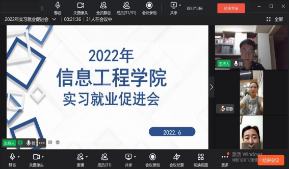 为贯彻落实上级文件要求和相关会议精神,进一步推进员工实习就业工作,6月6日,信息工程公司召开2022届毕业生就业工作与2023届毕业生岗位实习促进会。会议由学工办主任闫莹主持,公司党总支书记楚斌、经理王雷、副经理崔琳、所有岗位实习指导老师及相关辅导员参会。会议通过钉钉在线上召开。