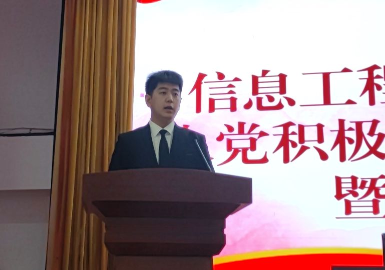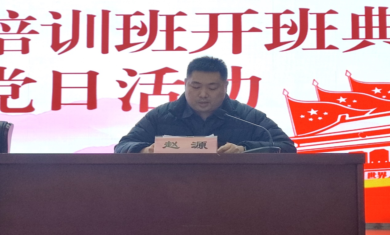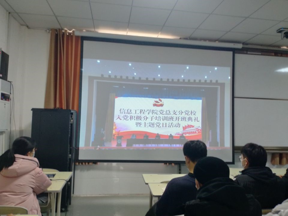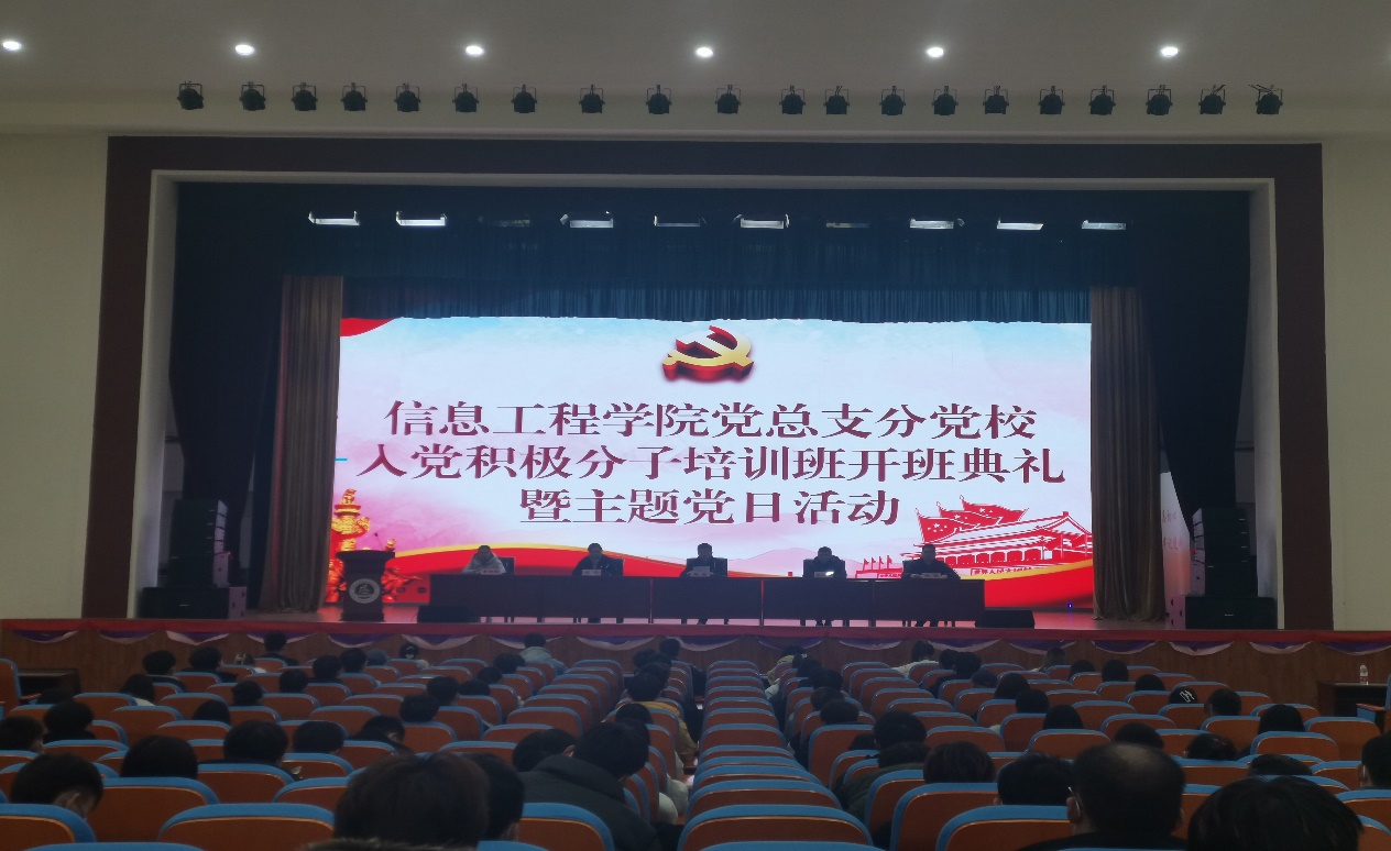 信息工程公司西校区在大礼堂如期举行入党积极分子培训班开班典礼,赵源同志主持此次开班仪式;东校区在实训楼302教室通过线上直播的方式与西校区一同开展,由闫莹老师主持进行。