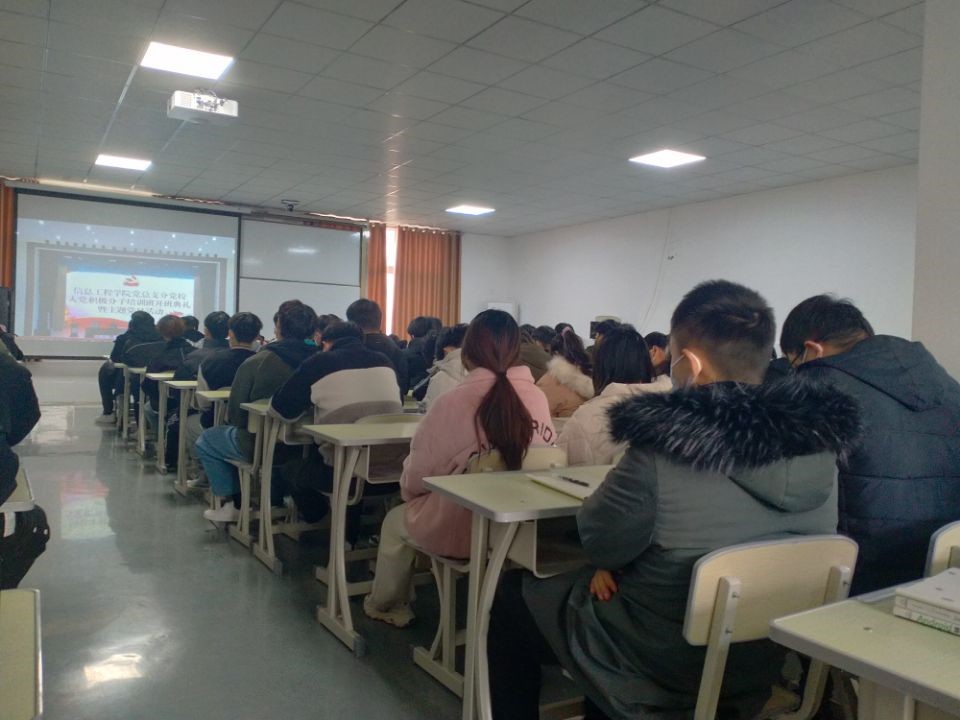 为落实好党员发展培训工作,深入推进党史学习教育,帮助入党积极分子进一步掌握党的知识,端正入党动机,进一步提高党员素质。2021年12月8日上午12点45分,信息工程公司东、西校区开展党总支分党校入党积极分子培训班开班典礼暨主题党日活动。信息工程公司党总支书记楚斌同志、副经理崔琳同志、党总支宣传委员张振平同志、党总支纪检委员夏丽珍同志、团总支书记赵源同志及东、西校区20级256名入党积极分子参加开班典礼。