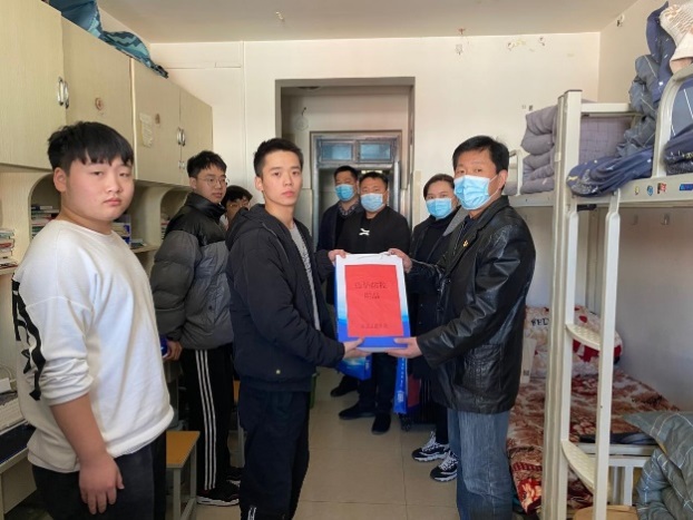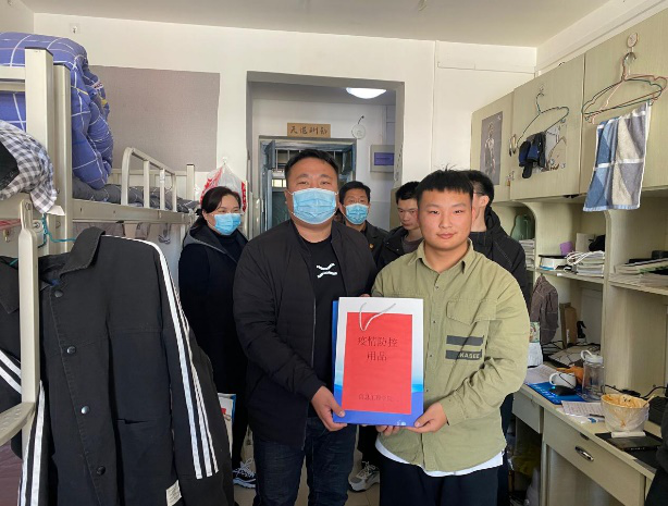 为进一步深化党史学习教育,扎实做好我为群众办实事专项工作,持续推进疫情防控常态化,切实把疫情阻断在校园之外,信息工程公司把员工身体健康放在第一位,同时守护当前来之不易的疫情防控成果。2021年11月23日中午,信息工程公司党总支书记楚斌带队,经理王雷、副经理崔琳和团总支书记赵源等一行数人,深入员工宿舍为员工发送防疫物资。