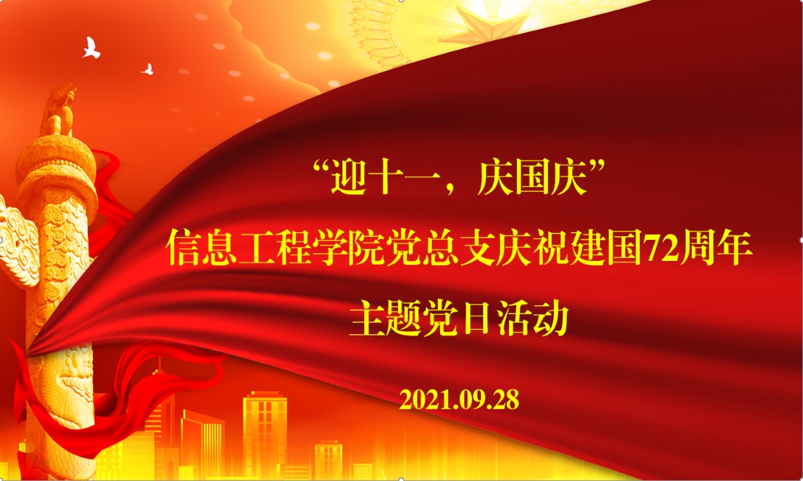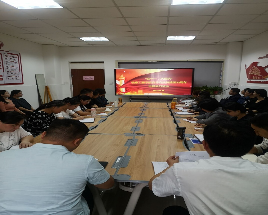 为庆祝中华人民共和国成立72周年,弘扬和传承爱国主义精神,引导党员深入学习贯彻习近平新时代中国特色社会主义思想,增强全体党员责任意识和爱国情怀, 2021年9月28日下午,信息工程公司党总支组织全体党员在西校区E315党员活动室开展“迎十一、庆国庆”主题党日教育活动。此次活动,由信息工程公司党总支书记楚斌主持。