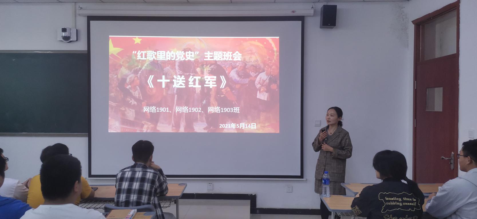 为加强理性信念教育和革命传统教育,营造浓厚的宣传教育活动氛围,增强员工热爱党、热爱祖国的感情,信息工程公司网络19级专业特邀请思政课张梓杨老师于5月14日在SC104教室为员工讲解《十送红军》这首红歌背后的故事。