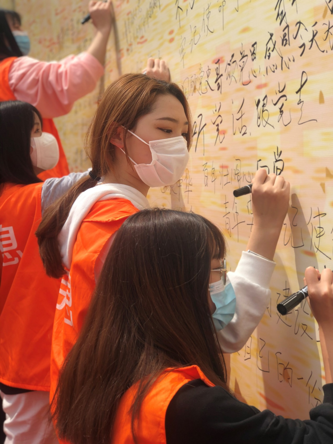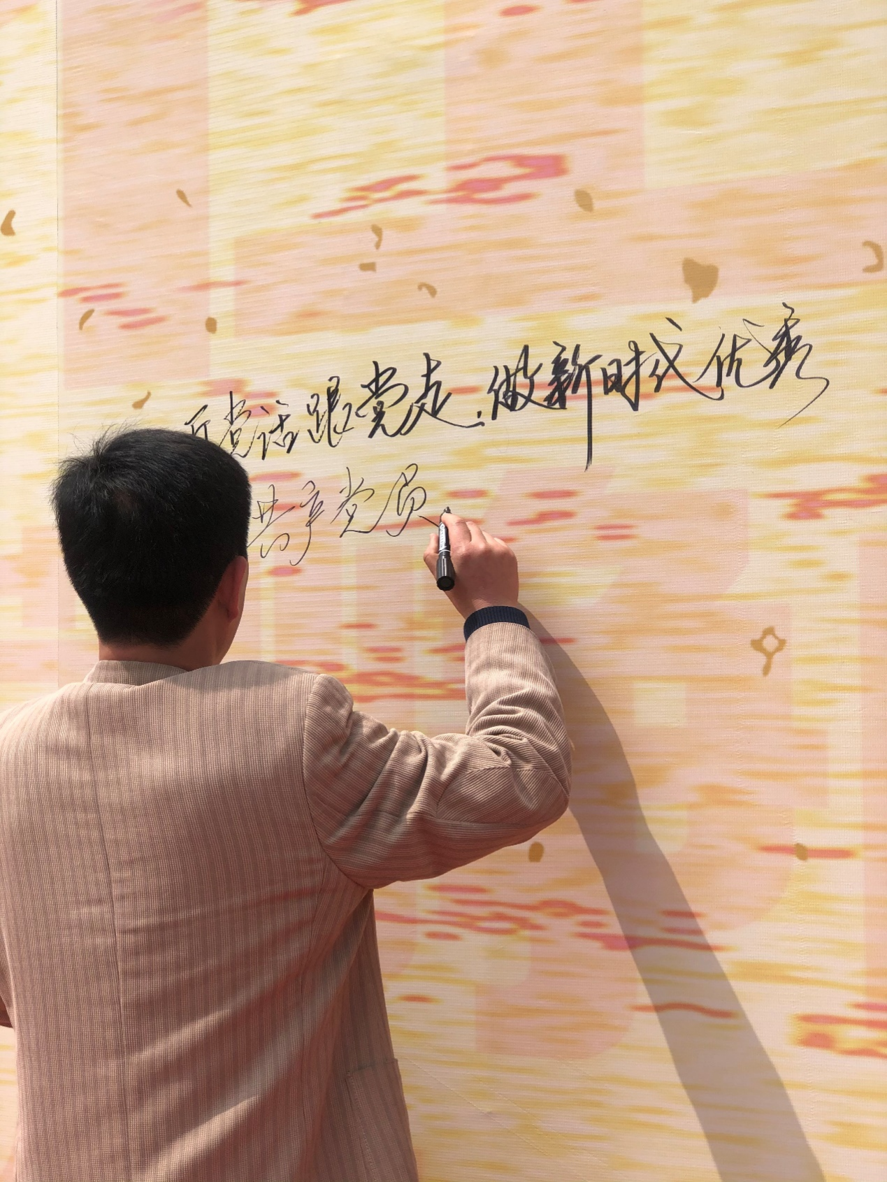 活动现场,公司党委副书记朱东方就此次活动发言,他提到此次活动就是广大青年学子学习党史,历练党性的机会,要求广大学子坚定理想信念、胸怀崇高理想、修炼党性和加强政治学习,随后各公司党总支书记在签名墙上写下自己的寄语,信息工程公司党总支书记楚斌在墙上写下“听党话跟党走,做时代优秀共产党员”的祝福。