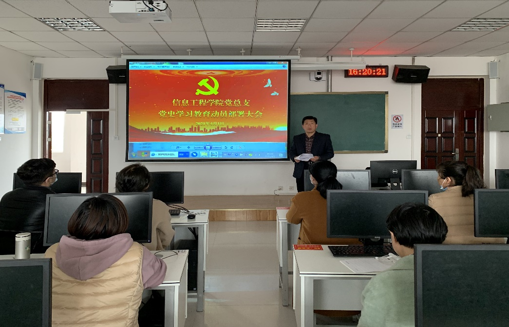 为深入学习贯彻习近平总书记在党史学习教育动员大会上的重要讲话精神,及落实公司党委《党史学习教育的实施方案》要求,2021年4月1日下午,信息工程公司党总支全体党员分别在西校区E315和东校区519机房召开了党史学习教育动员部署会议,并开展学习《中国共产党简史》第一章中国共产党的创建和投身大革命的洪流,本次会议由信息工程公司党总支组织委员张振平同志主持。东校区由党总支书记楚斌同志主持。