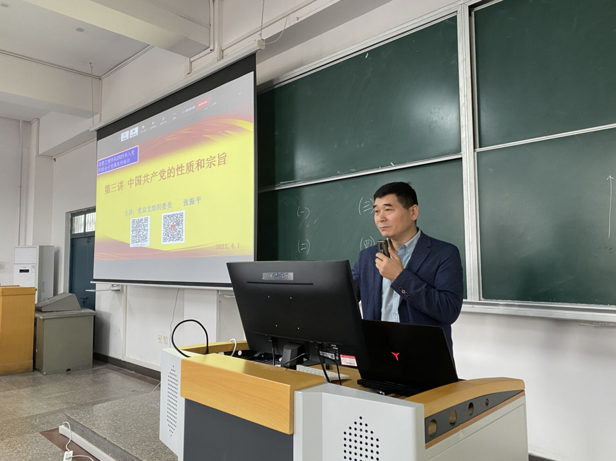课上,张振平老师为大家讲解了中国共产党的性质、宗旨,内容深入浅出,让大家进一步明确成为一名党员不仅是光荣更是责任,他希望同学们能担起责任,全面发展,迎难而上,为实现富强民主文明和谐美丽的社会主义现代化强国努力奋斗。