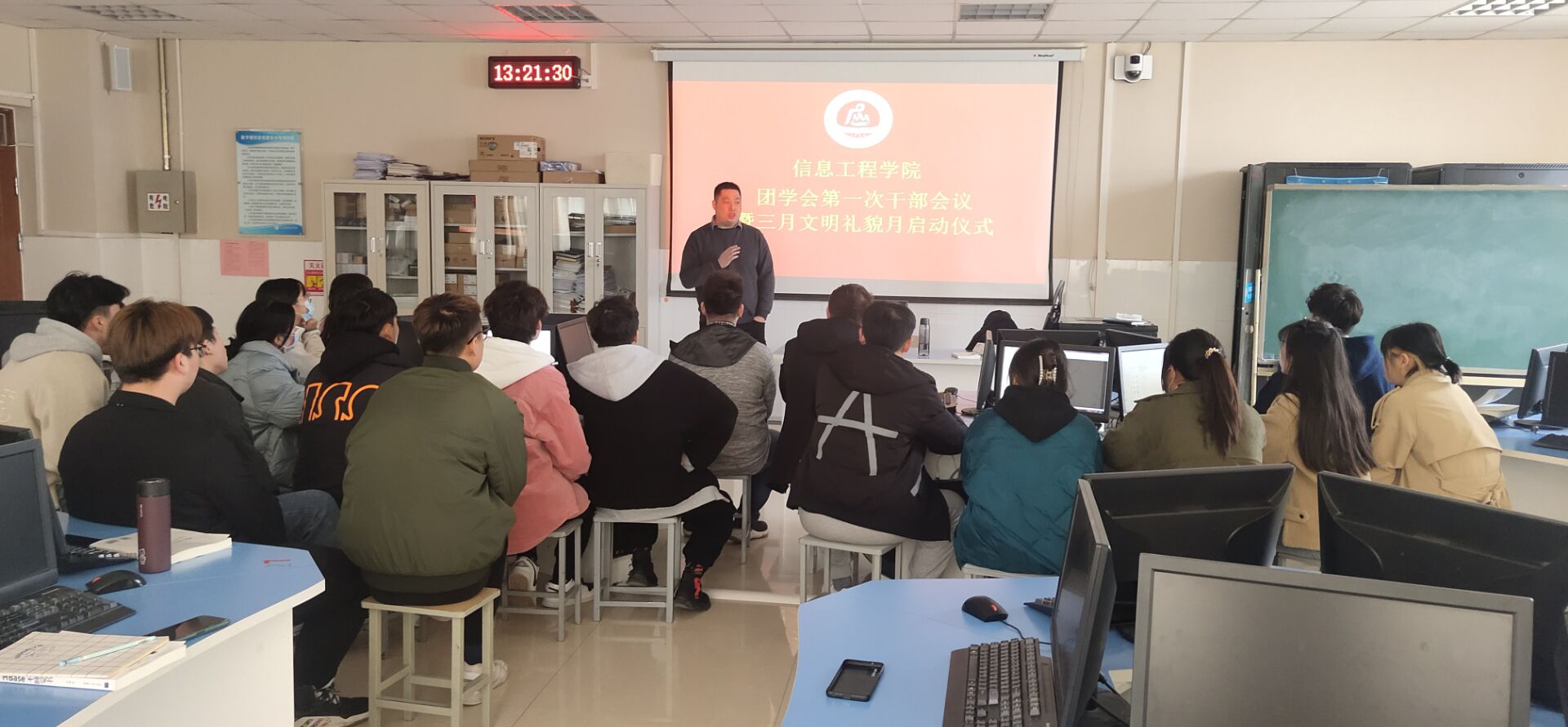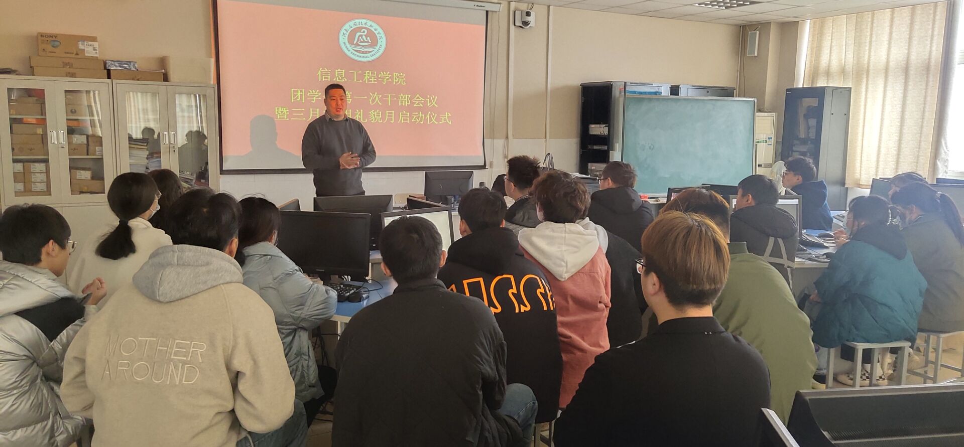 2020年3月3日中午,在E楼416教室召开了新学期第一次干部会议,参加会议有信息工程公司团总支书记赵源老师和信息工程公司团学会19级全体员工干部。本次会议主要有三点内容。