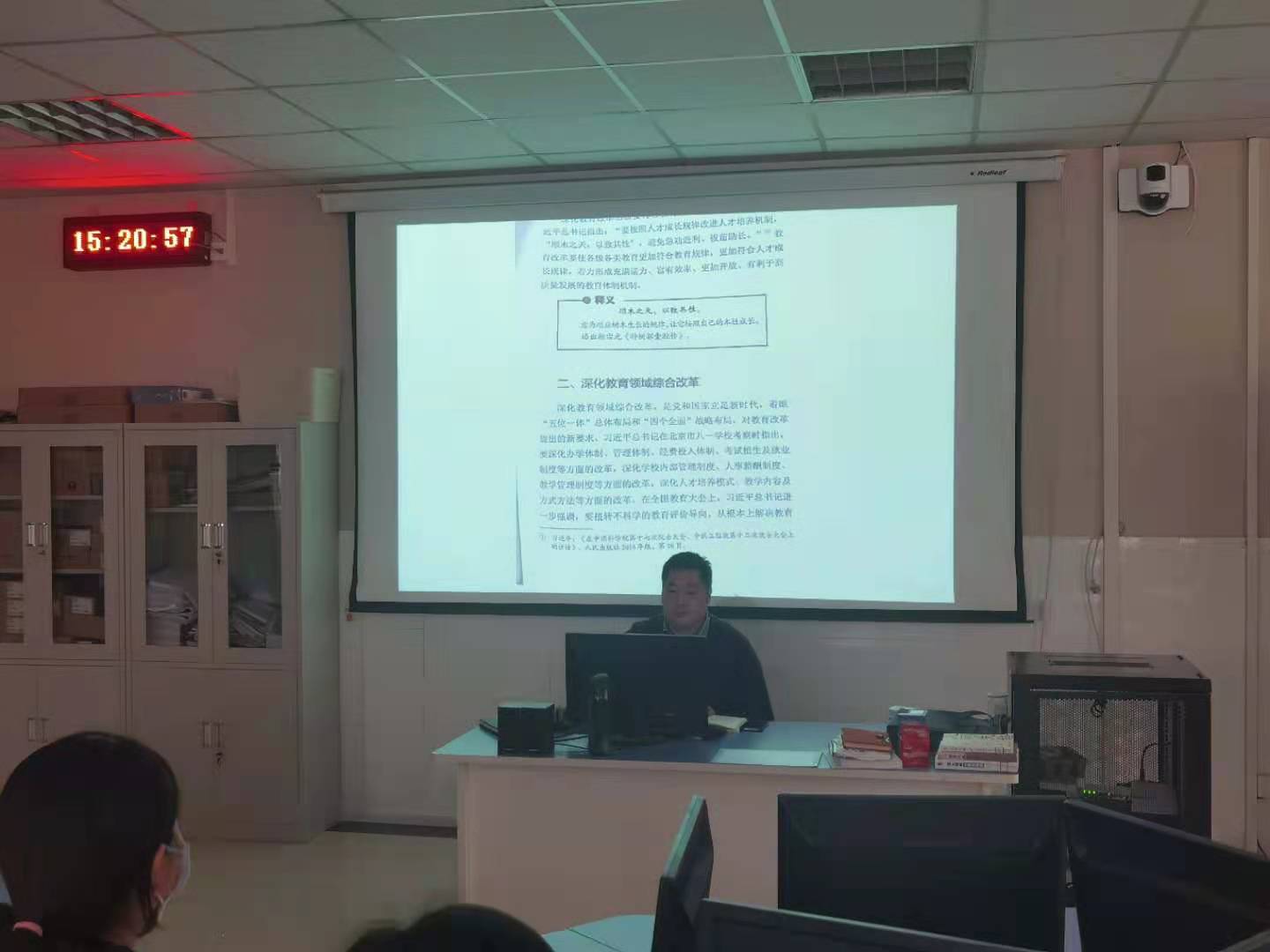 在观看完纪录片后,信息工程公司全体教师又集中学习了《习近平总书记关于教育重要论述讲义》部分章节: