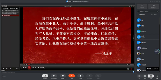 为庆祝中国共产党成立九十九周年,引导广大党员筑牢信仰之基,补足精神之钙,砥砺初心使命,锤炼坚强党性,争当先锋表率,2020年7月1日信息工程公司党总支组织三个支部的全体党员及朱舸等40名员工预备党员隆重集会,开展以“牢记初心使命,争当出彩先锋”为主题的支部党日活动及预备党员入党宣誓大会。会议由信息工程公司党总支副书记杨明杰同志主持,主要议程如下: