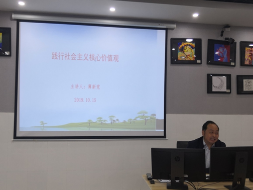 为扎实开展好“不忘初心、牢记使命”主题教育,2019年10月15日,公司党委委员、副经理薄新党同志在E414为信息工程公司党总支全体党员和职工上了一堂生动有意义的党课。薄经理围绕着践行社会主义核心价值观,采用大量案例深入剖析、细致讲解。薄经理的党课主要分为四个内容:
