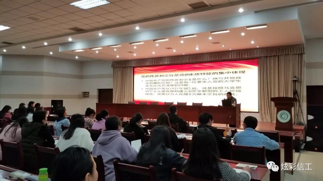 第一课结束后,信息工程公司张振平老师又给我们开讲了第二课:《党的性质和宗旨》,首先他给学员们讲述了自己对党的认识,让学员们观看了5分钟的短视频,使学员们了解到近代以来国家艰苦卓绝的发展历程。随后张老师以历史事实为依据讲解了党的性质和宗旨,内容充实而深刻,极具思想性。他的一言一行,对每一位学员的思想都起到了无可比拟的导向作用。同时让同学们了解到了入党的流程与条件,党的先进性,党员的先进性,党员的模范带头作用,党的纪律,方针政策等,使入党积极分子更加了解在大学阶段如何做,如何开展和积极支持党的工作,如何树立踏实肯干的工作作风,如何服务同学,为党性修养的提高奠定坚实的基础。