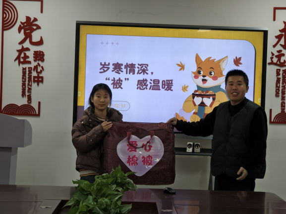 冷风瑟瑟,寒意渐浓。为关怀学子身心,切实推进公司资助工作,2024年12月17、18日信息工程公司分别于开封、郑州两校区开展“岁寒情深 ‘被’感温暖”主题活动。信息工程公司书记崔琳,公司党总支副书记、学工党支部书记蒋欣哲,学工党支部组织委员、团总支书记冷月、辅导员代表参加本次仪式。
