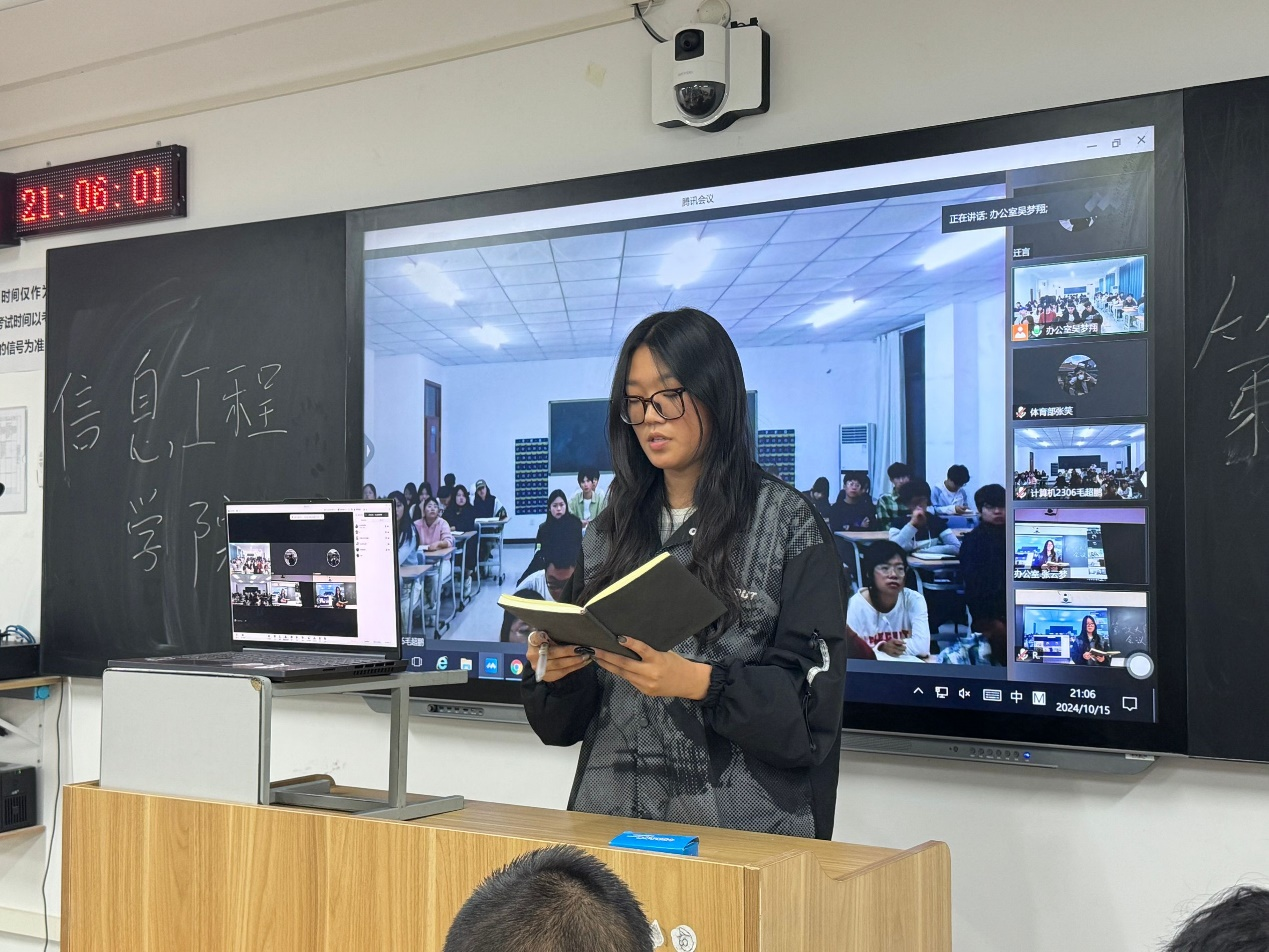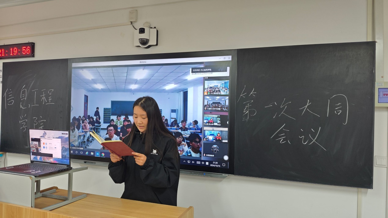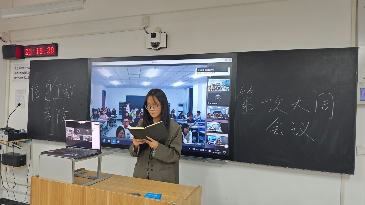 博观而约取,厚积而薄发。为有序推进员工会工作开展,提高员工会成员综合素养,帮助新成员尽快融入员工会大家庭,2024年10月15日晚,信息工程公司于开封校区F410开展员工会周例会,郑州校区于教室SC302同步开展线上会议,团总支书记冷月、学工办主任常昆、23级主席团、各部门部长、副部长及23级部员、24级部员参会。