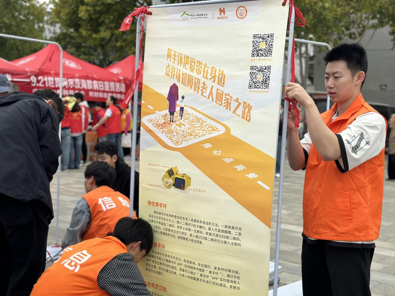 公司青年志愿者向现场老人们讲解“黄手环”的功能及用途,发放“黄手环”宣传手册,并按照规范流程为满足条件及有需要的老人进行信息登记、注册。