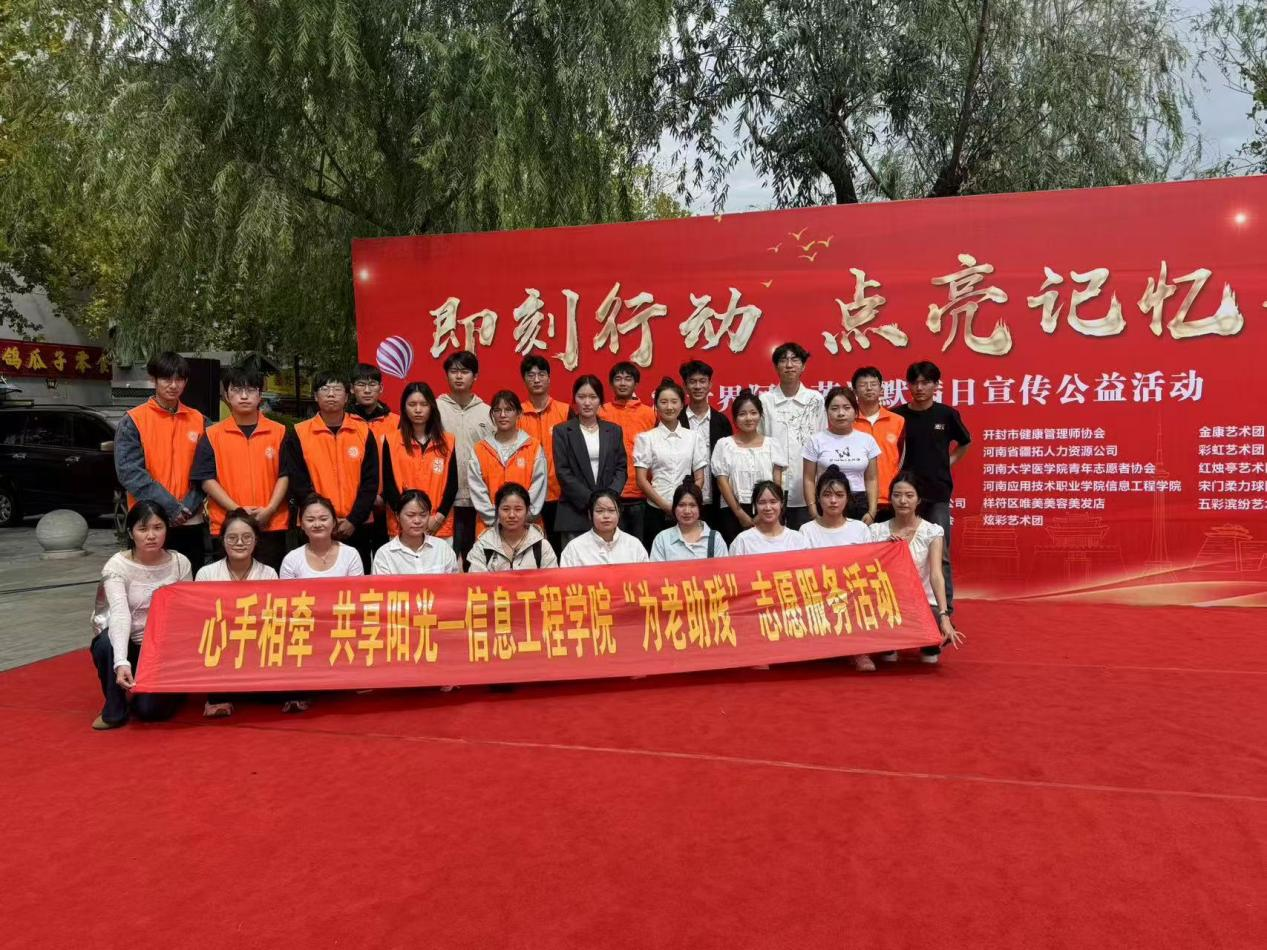 为贯彻落实党的二十大精神,弘扬尊老、敬老、爱老、助老的中华民族传统美德,2024年9月21日,信息工程公司团总支组织青年志愿者赴开封市龙亭区西关北街参加开封市志愿者协会发起的“即刻行动 点亮记忆之光--9.21世界阿尔茨海默病日宣传公益活动”。