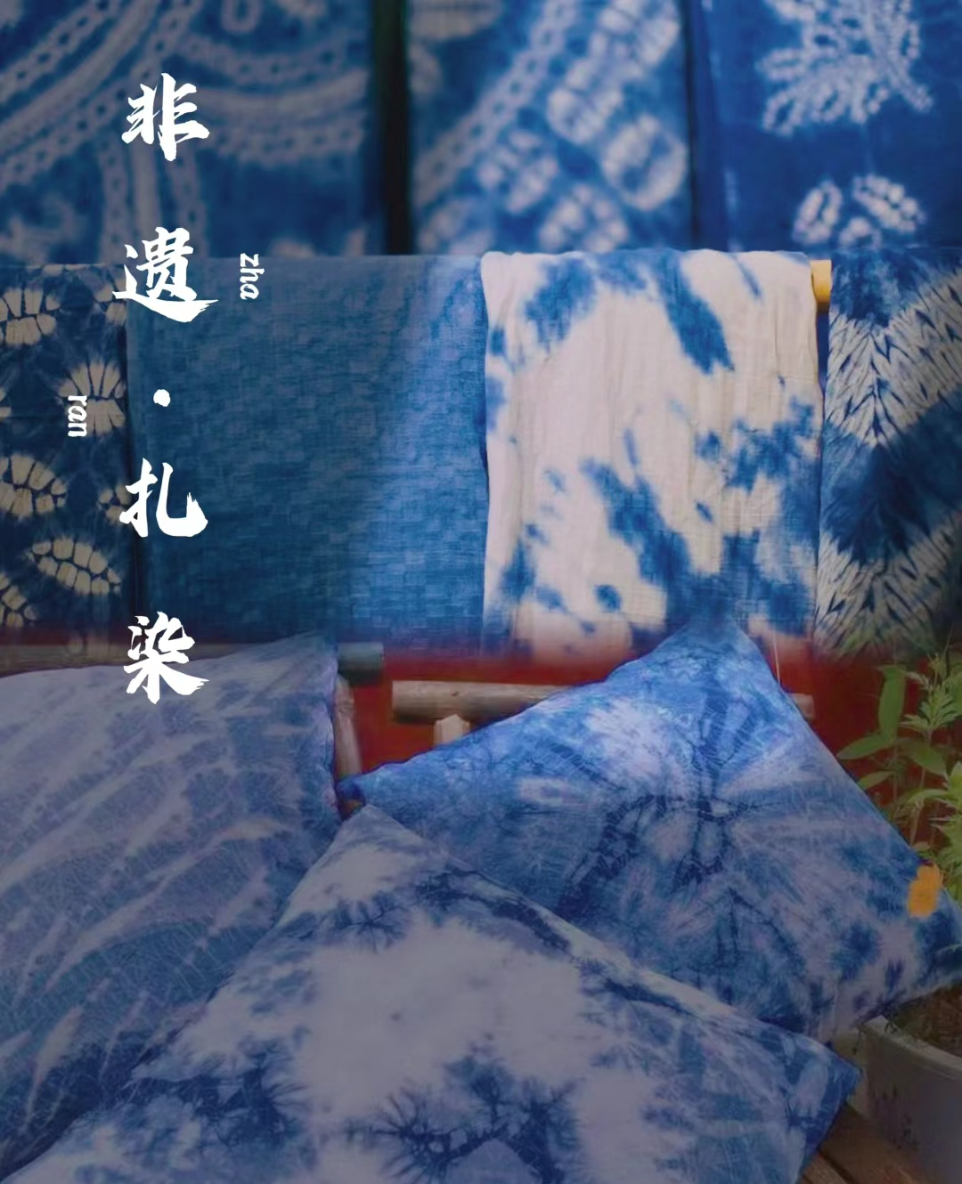 扎染,古称扎频、纹 、夹物和染,是中国民间传统而独特的一种染色艺术扎染常以蓝白二色为主调1,用以营造古朴的意蕴,其图案纹样变化多端,具有令人惊叹的艺术魅力。扎染与蜡染、 空印花并称我国古我三大印花技艺。千百年米北染技是不断演变,传承着民情风俗与审美情趣。