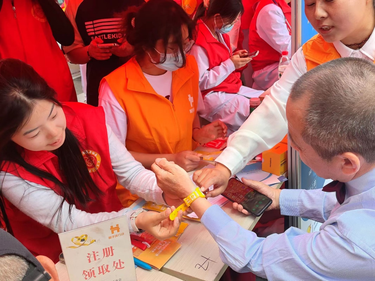 活动现场,志愿者们认真工作,积极维持现场秩序,协助主办方工作人员对前来领取黄手环防走失定位贴的老人进行登记,试戴,并贴心搀扶老人,为他们讲解防走失黄手环的用途及使用方法。此外,同学们还自发宣传了阿尔茨海默病的特征、预防知识以及一些日常健康小常识。耐心热情的服务,得到了老人及主办方工作人员的高度赞扬。