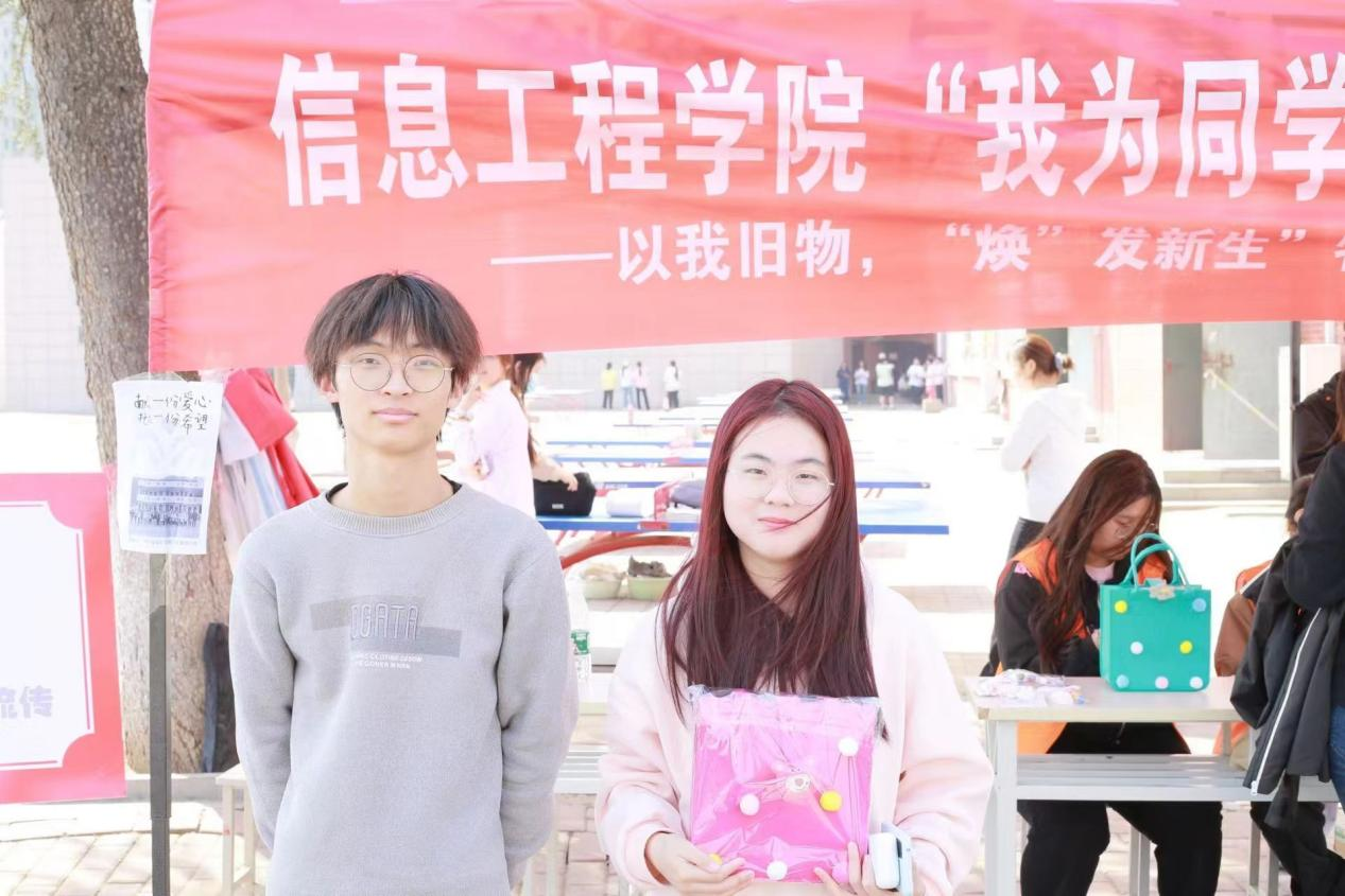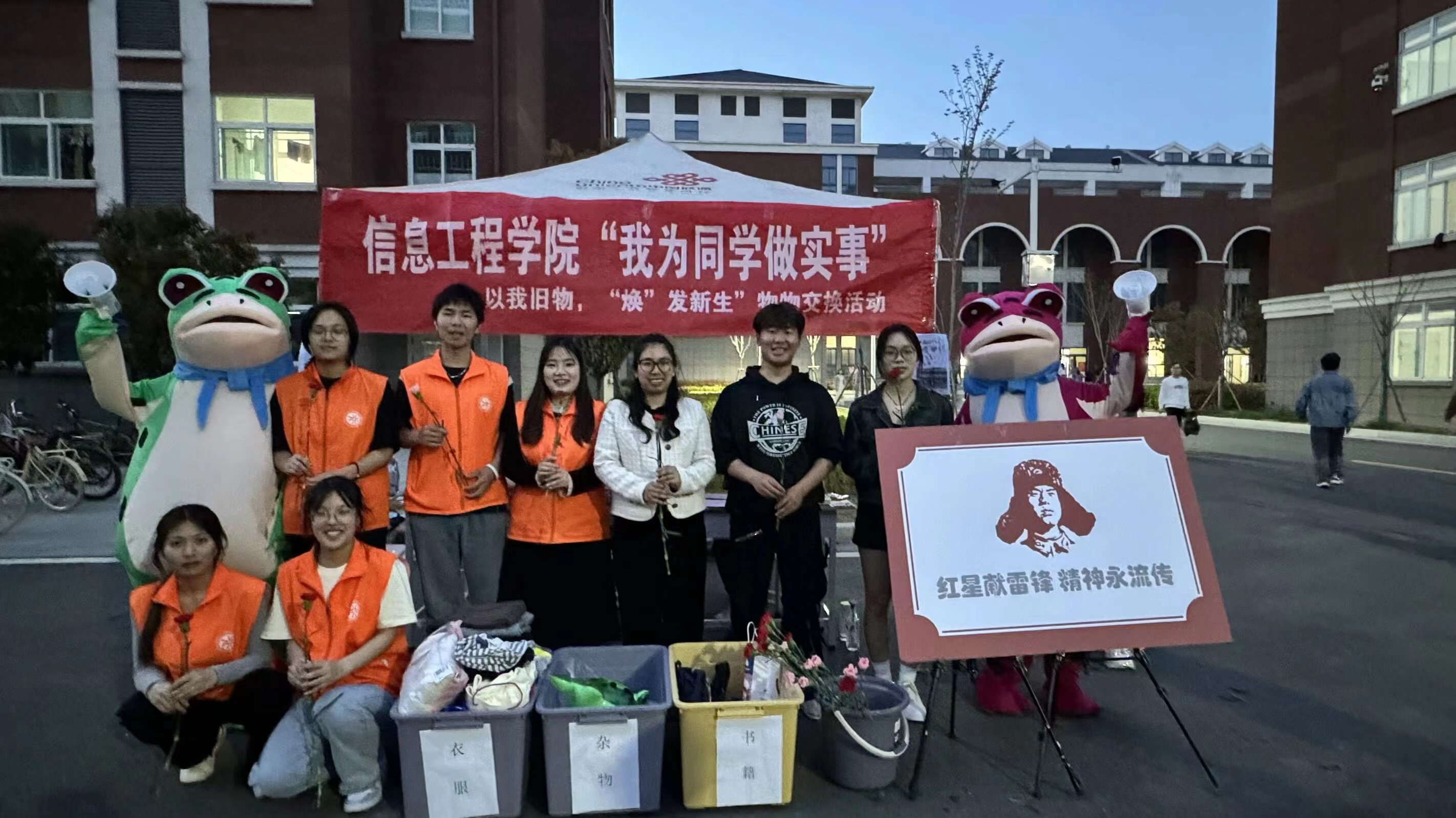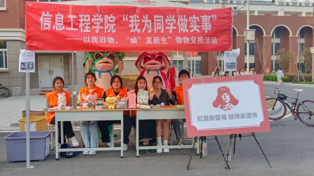 为大力弘扬雷锋精神, 培养青年节约资源,物尽其用的习惯,赋予物品另一种意义上的重生,让小小的物品成为联系从未谋面陌生人直接的纽带、2024年3月29日,信息工程公司在开封校区宿舍A、B楼中间、郑州校区操场开展我为同学办实事--“呈我旧物,“焕”发新生”雷锋系列活动。