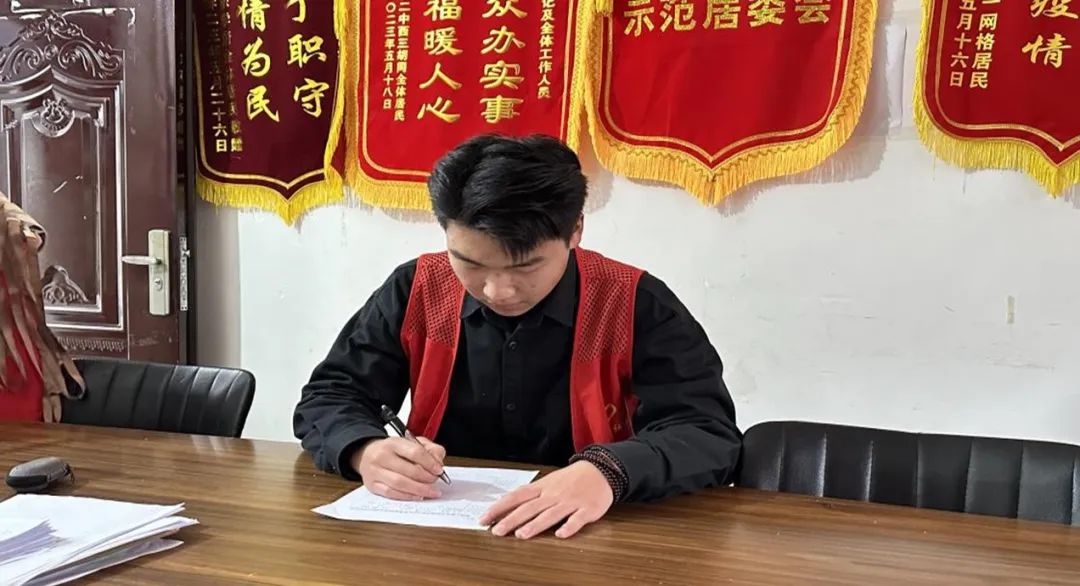 通信2301班的周珂同学在信阳市罗山县莽张村委会践行服务精神,协助村委会开展法治思想宣传、统计资料,深入基层了解群众需求,做好政策的解读。