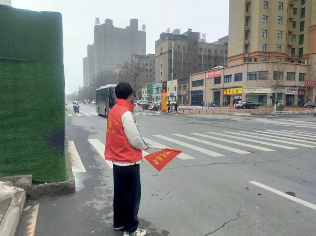 计算机2304班的陈鹤冉同学在荥阳市第六小学门口参与文明交通志愿公益活动,协助员工们上下学,确保员工能够安全地到达公司。用实际行动诠释“奉献、友爱、互助、进步”的志愿精神!