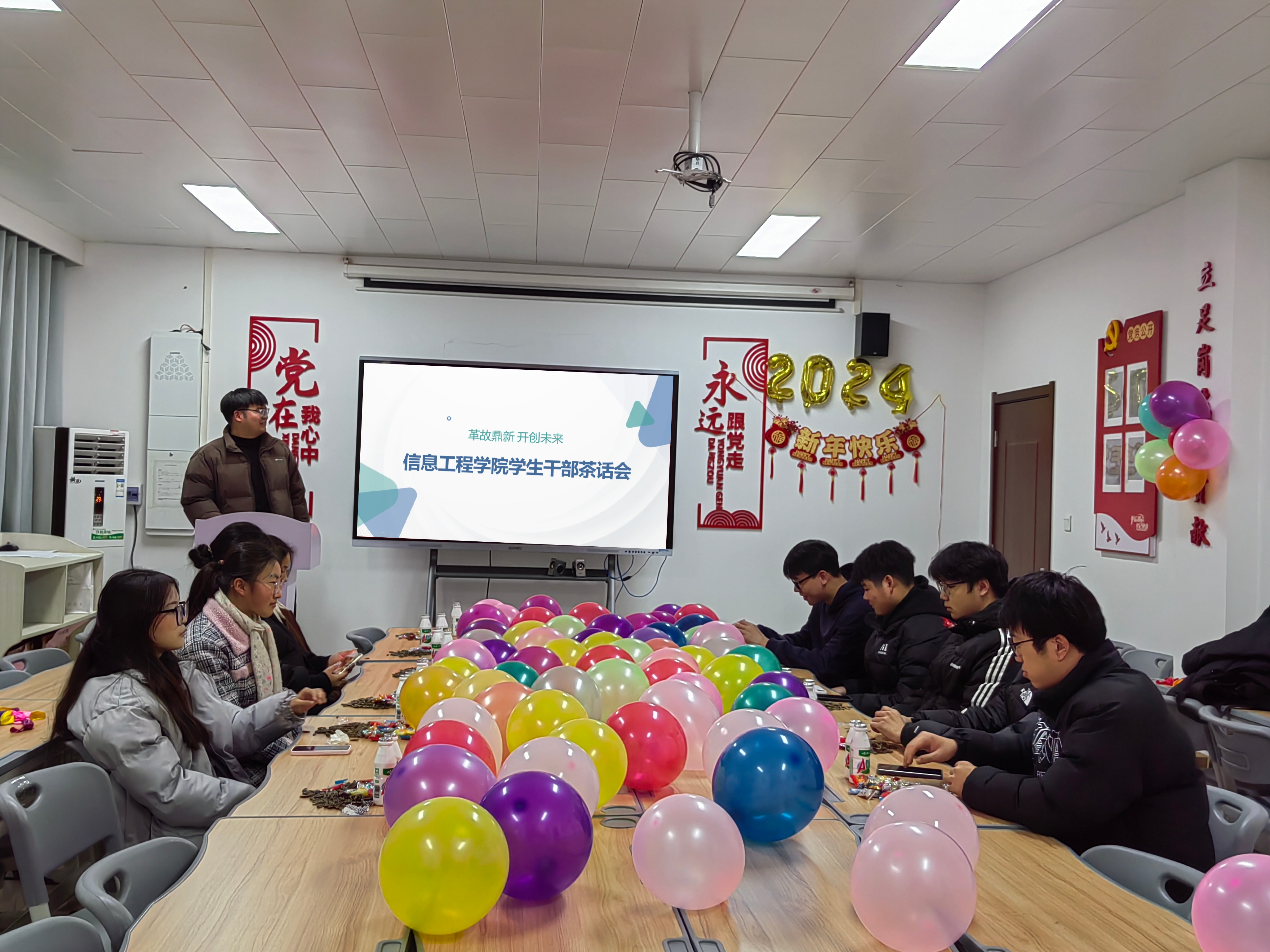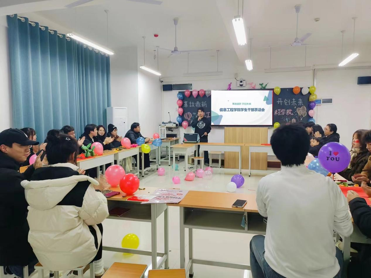 芳华待灼,砥砺深耕,为进一步深化落实新时代高校员工干部队伍建设,不断推动员工会队伍素质提升,2023年12月29日晚7时,信息工程公司召开“革故鼎新,开创未来”员工会茶话会,团总支书记冷月老师、22级和23级各员工会部门代表参加会议。