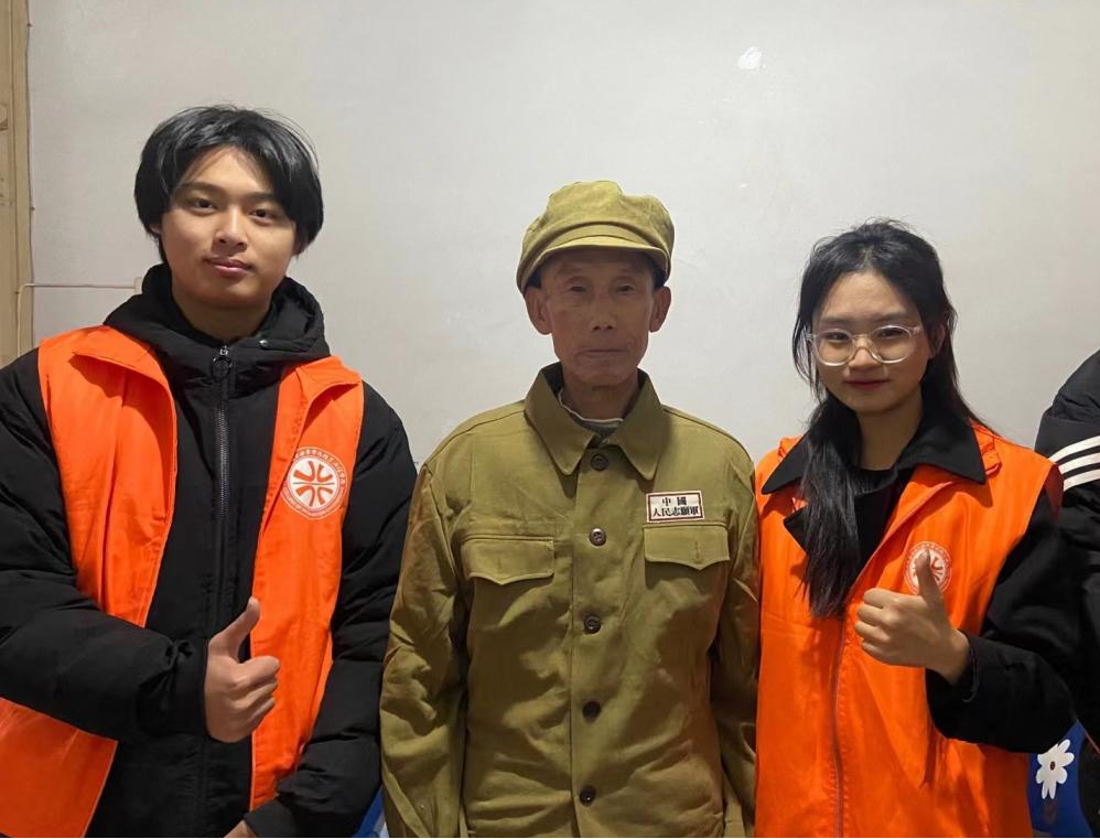 2023年12月9日至12月19日,同学们载着沉甸甸的“梦想”再次敲响老战士的家门,分批分次将量身定制的军装送到了他们的手中。老战士们用手轻轻抚摸胸前的胸章,感受着过往岁月的激烈和悲怆。
