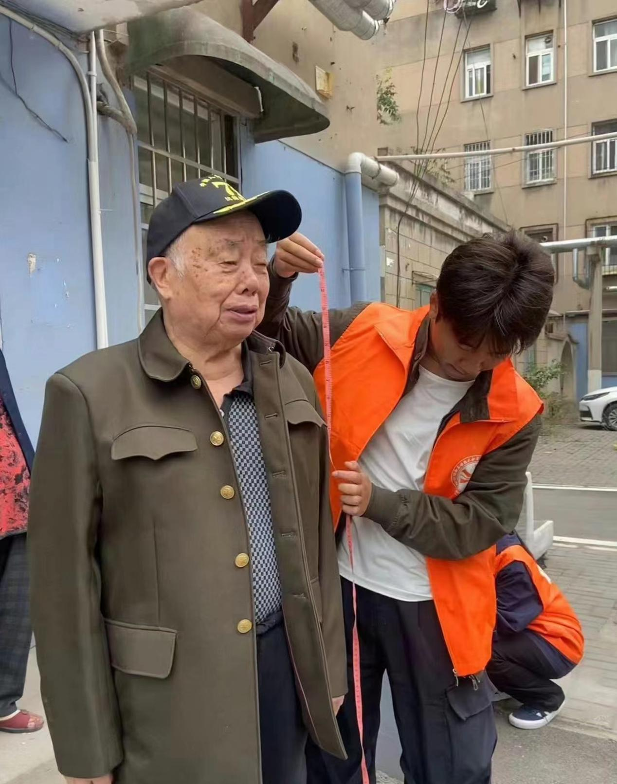 受烟台市民间自发性公益组织志愿军老兵帮扶计划的委托,信息工程公司的同学们迎来了一项特殊的任务:帮助开封市志愿军老战士圆梦——再穿一次志愿军军装。为保证圆满完成此次任务,考虑到军装的适体度和舒适度,2023年11月5日至11月6日,同学们为住在开封市的19位志愿军老战士量体裁衣。
