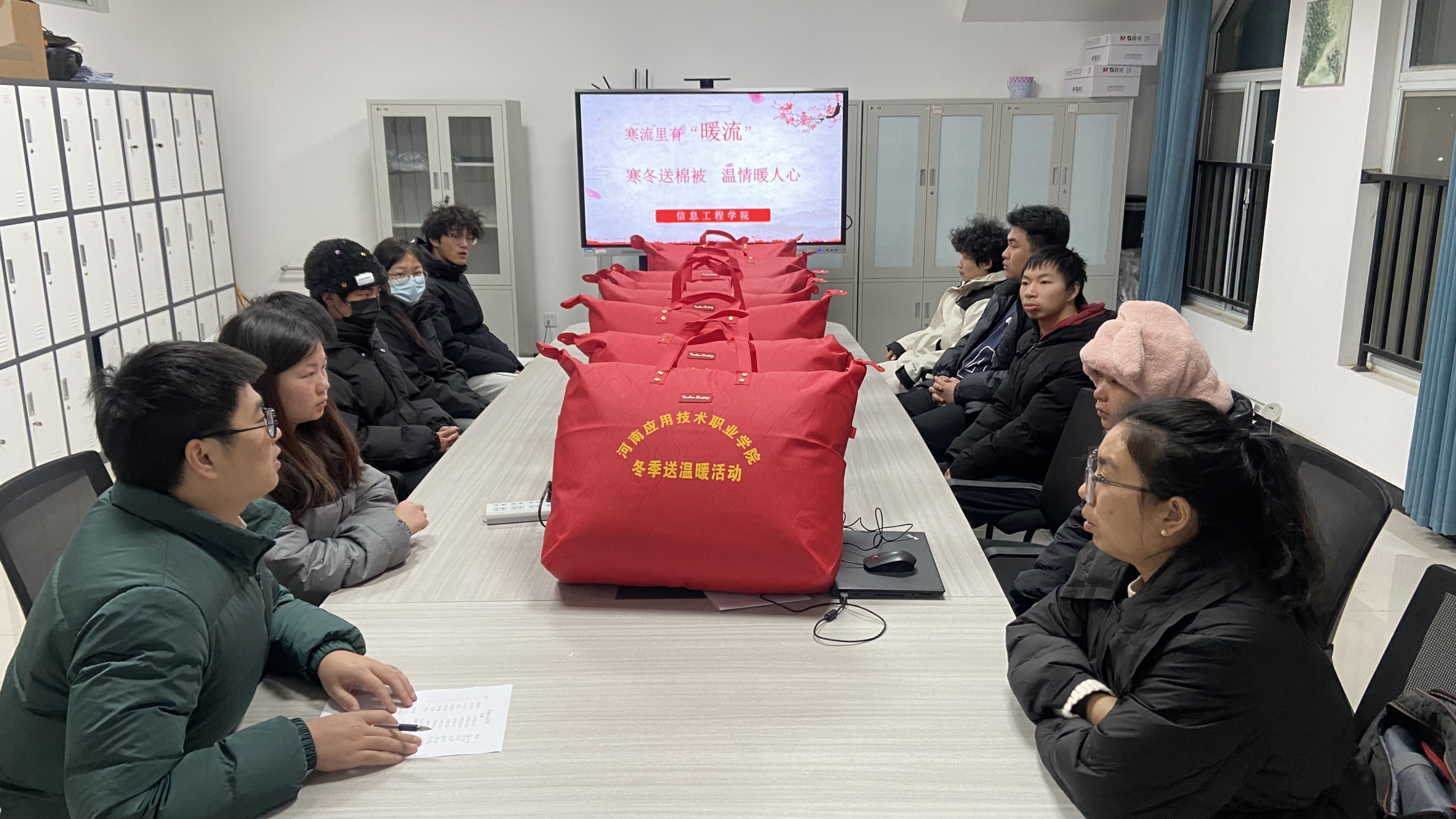 寒风凛凛,气温骤降,为帮助同学们抵御寒冷,贯彻落实国家员工资助政策,信息工程公司积极开展“寒冬送棉被 温情暖人心”活动,12月15日至18日为14位家庭经济困难员工送上一份冬日温暖。公司学工办主任常昆和团总支书记冷月参加了发放仪式。
