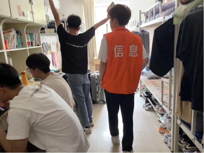我们向各个宿舍楼老师签到后,开始对每层楼进行安全排查以及卫生记录。检查的内容除了宿舍整体卫生状况,个人卫生情况之外,还包括电源使用情况等。此次重点对信工宿舍卫生状况进行检查,着重检查了垃圾桶、物品摆放等地方,并就宿舍安全问题给出温馨建议,同时指出打扫时要注意细节问题。检查结果显示,大部分的宿舍干净整洁,但有个别宿舍做得不够好,出现打扫不干净,东西乱摆放,甚至发现有吹风机等违禁物品的问题,急需改善。对这次检查反映的问题,应加以整顿,督促员工营造温馨整洁的住宿环境。对此,我们对其进行了提醒以及拍照上报等措施,督促同学们积极改正。