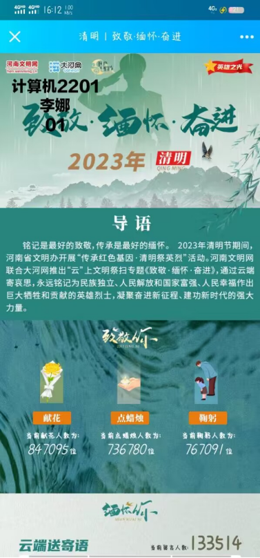 活动当天,各团支部组织全体同学,参与了“网上祭英烈”活动,并开展不同形式的主题团课。同学们纷纷通过鲜花、点蜡烛、鞠躬、留言、主题讨论等方式表达深情缅怀和无限思念。一段段留言寄托着员工们对先烈的哀思与敬仰,表达了对先烈的崇敬之心、感念之情、传承之志。