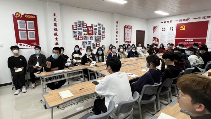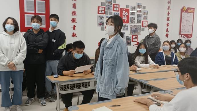 会议议程第二项,蒋欣哲做自我介绍并讲话。他讲到,希望22级员工会成员能够在接下来的工作中脚踏实地、积极主动,抓住机会多多的学习和实践,不断提升和完善自我,在信息工程公司员工会这个平台上充分展现自己,发掘自己的潜能。