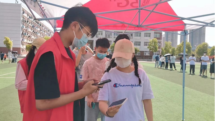 检测现场,公司志愿者提前到场组织各班同学排队,查看各班人数,提醒同学们提前进行登记预约,以便医护人员进行检测。同时要求同学们佩戴好口罩,间隔一米,各班同学在公司志愿者的带领下到达核酸采集处,在大家积极的配合下,此次全员核酸检测工作快速有效的完成。