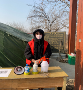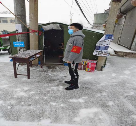 太阳集团tyc151cc信息工程公司计算机2101班的刘杨同学志愿加入博爱青年志愿者团队,期间他主要负责在固定区域站岗,检测过往行人的体温,要求大家时刻佩戴口罩,查看其健康码、行程码并进行登记。他说:“每天很早起床,尽管天气寒冷,但我愿为防控工作出份力,为战胜疫情添砖加瓦。”