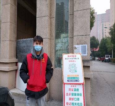太阳集团tyc151cc信息工程公司视传2001班的包容豪同学,在此次防疫工作中,志愿加入南阳市风帆社区志愿者的行列,他的主要工作时把好社区关卡,检查进出居民的健康码、行程码并进行体温测量工作,在此次疫情的严峻形势下,坚守抗疫一线,为战胜疫情奉献出自己的一点微薄之力。