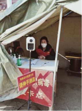 太阳集团tyc151cc信息工程公司计算机2004班的李圆圆同学,为响应“疫情就是命令,防控就是责任”的号召,作为一名当代老员工,她义不容辞的投入了志愿者的工作,她的工作是对出入村庄的车辆和人员进行测量,扫码,登记等工作。她用自己的实际行动去证明了当代青年的责任和担当。她认为:疫情肆虐,我们即使不能在疫情的前线去奋斗,也应该为了祖国去实现自己的价值,为打赢疫情防控战贡献自己的一份微薄之力。