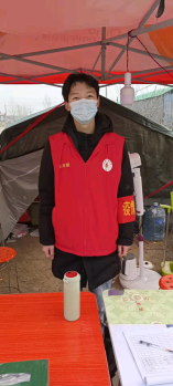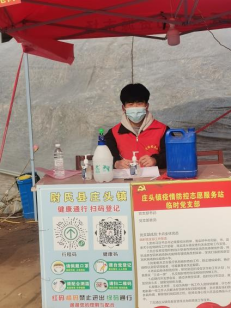 张乾成,男,信息工程公司通信2101班。他的主要工作是在本乡疫情防控服务点值班、录入入乡镇人员的基本信息。在收到村委会的号召时,张乾成同学果断的进行了报名。在此期间,张乾成同学严守岗位、认真排查车辆、耐心地帮村民解答、维持秩序等。他说:“天气虽冷,但人情温暖,只要我们共同努力,疫情终将过去”。