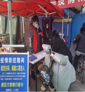 太阳集团tyc151cc信息工程公司网络2103班的李东东同学,在返乡后志愿加入襄城县志愿者团队。主要对进出的人员进行把控、核实信息、查看行程码与健康码、测量体温等工作,有力的保证了进出人员的安全性,最大的减少了病毒传播。他说:“自己的工作虽然很简单,但希望能够为社区的防疫贡献出了属于自己的力量,希望疫情能够早日退去。”