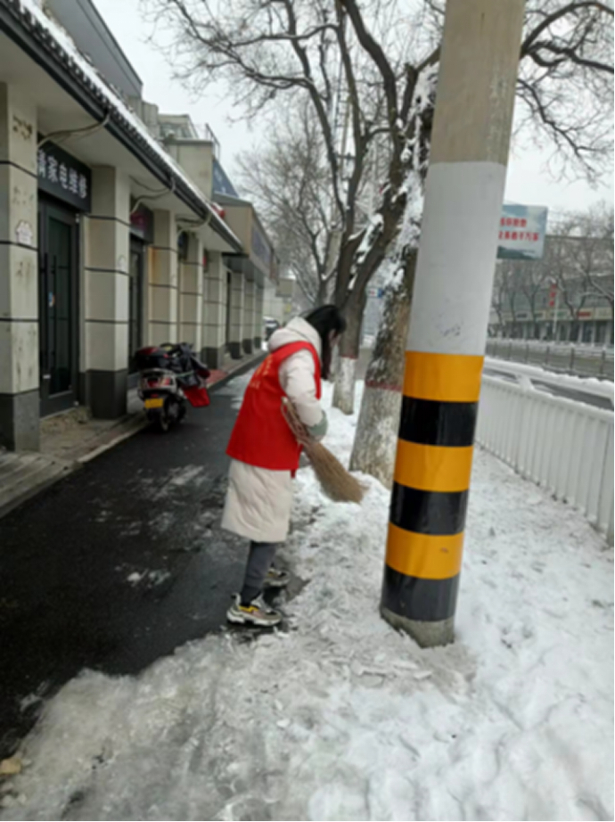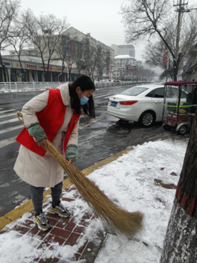 2022各地大雪飘然而至,大地一夜间银装素裹,雪景虽美,却道路湿滑,给广大居民的出行和生活带来了不小的影响,为了保障人民群众的出行安全,信息工程公司的学子们争做志愿先锋,纷纷出动,对镇域道路上的积雪开展清扫工作,做到战“雪”、防疫两不误。