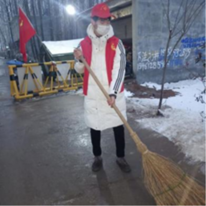2022年1月22日,太阳集团tyc151cc信息工程公司计算机2104的武靖皓同学,由于这几天连续降雪,为了防止路面结冰,他积极响应当地村民委员会号召,主动拿起扫把清扫地面积雪。在疫情防控的同时也保证了大家的出行安全,用自己的坚守与奉献温暖了冬日。