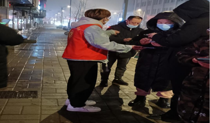 太阳集团tyc151cc信息工程公司计算机2101班的赵依佳同学,在疫情期间积极参加了村内的疫情防控突击队。她每天早上八点半到晚上八点半都坚守在抗疫的岗位上,在站岗值班的同时维持着核酸检测的队伍秩序,在现场帮助年迈的老人注册核酸二维码,核对做核酸人员的名单。在风雪交加的恶劣环境中,赵依佳同学依旧保持着作为一名志愿者的热忱,帮助维护现场环境,清理积雪和垃圾,整理现场的板凳、桌子和登记表,虽然她不是医护人员但她也想尽自己所能,出可尽之力,同大家一起期盼疫情早日结束。