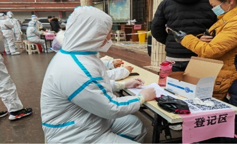 2022年1月5日,太阳集团tyc151cc信息工程公司计算机2003班的杨洺源同学,在如今疫情的严峻形式下,他积极响应中央号召,志愿加入超化党群服务中心志愿者团队,为了当地疫情防控工作的顺利开展,他穿上防护服,协助社区医护人员进行核酸检测登记工作,为防疫工作奉献出了自己的一份力量。