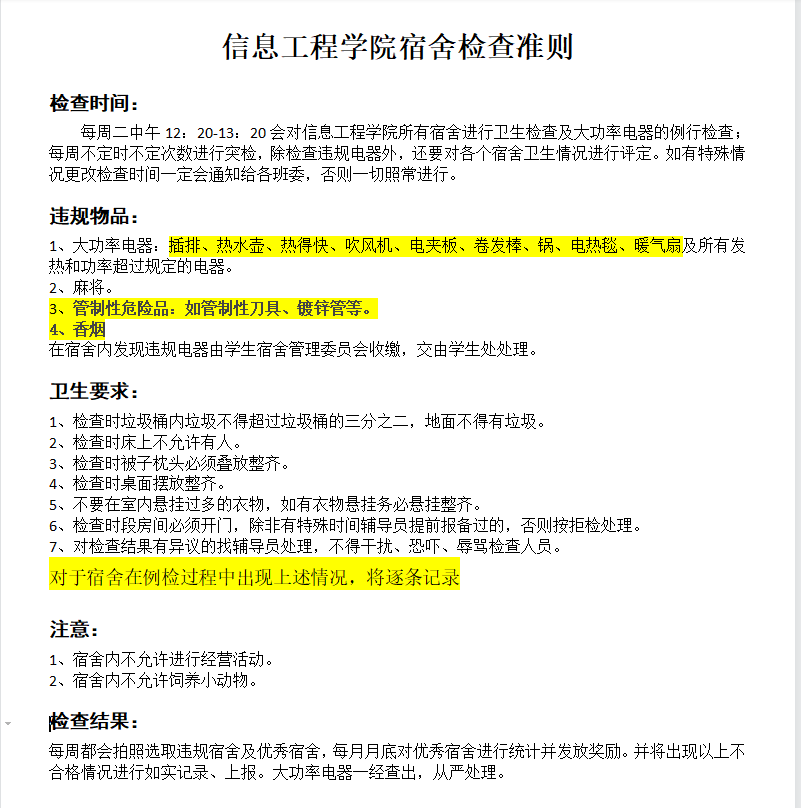 此次查寝走访活动不仅帮助新生更好的适应新公司的生活,还加强了公司新生们的宿舍安全意识,避免了违规电器带来的安全隐患,为公司的新生带去了关怀,进一步推进了宿舍文明建设。相信在即将开始的老员工活中,同学们定能严守信息工程公司宿舍的规章制度,营造一个文明、和谐宿舍环境。