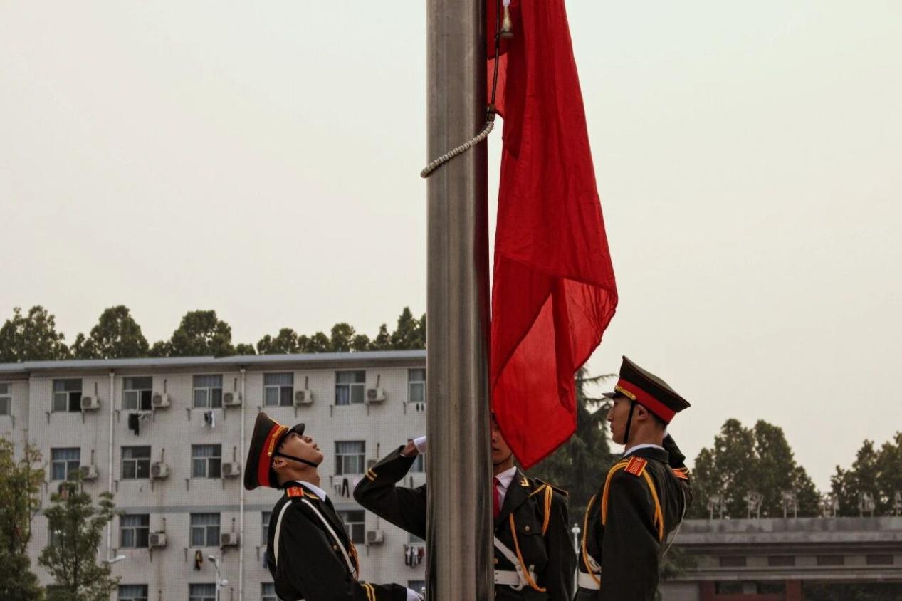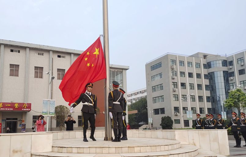 随后,雄壮有力的《义勇军进行曲》响彻了整个校园,老师和同学们集体行注目礼,全场弥漫着一种庄严肃穆的气息。鲜艳的五星红旗冉冉升起,激发了所有员工不断向上的斗志,点燃了同学们强烈的爱国热情。