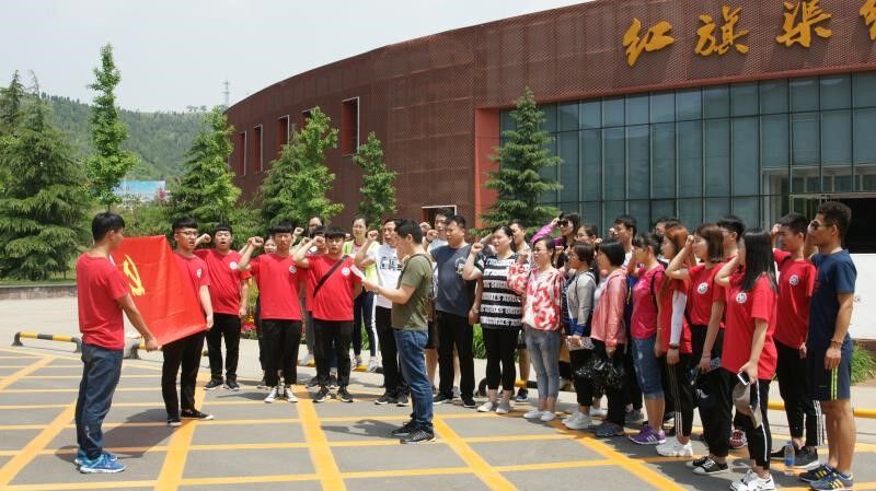 为弘扬自力更生、艰苦奋斗的红旗渠精神,加强爱国主义教育,充分发挥党员干部的先锋模范作用,2018年5月12日,信息工程公司党总支组织全体教师党员及优秀员工入党积极分子30人赴河南省林州市革命传统教育基地——红旗渠考察学习。5月12日清晨,我们登上了去林州的大巴。窗外晨雾缭绕,车内暧意融融。全体成员重温了考察学习注意事项,随队领导也再次明确了此行的目的和要求。车行四小时后,我们来到了此行的主要目的地——林州市红旗渠。