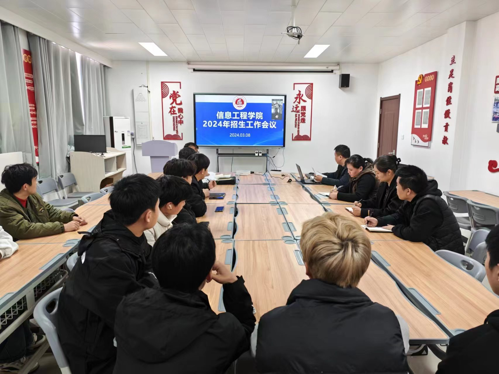 3月8日信息工程公司在郑州校区A514开封校区C314同步召开2024年单独招生工作会议,信息工程公司经理王雷、书记崔琳、副经理齐峰、副经理夏丽珍、副书记蒋欣哲、负责招生的老师参加会议。会议由学工办主任常昆主持。